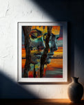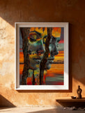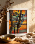 Her face is a horizon of its own, where the sun both rises and sets, where memories dissolve into water and longing burns into color. She does not break apart—she becomes infinite, a living canvas of time, grief, and transcendence.