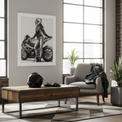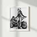 This piece is more than the union of rider and machine — it is the embodiment of independence, rebellion, and the quiet poetry of motion. She is not waiting. She is not posing. She is listening to the silence before the storm of the road, where her story will be written in speed and asphalt.