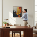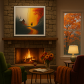 They walked side by side beneath a crimson umbrella, their steps tracing a molten river of color through a world divided between shadow and light. Behind them, the old cabin and withered pines whispered of stillness and forgotten time. Ahead, the path glowed like liquid gold, dripping from unseen skies, daring them to keep moving forward.